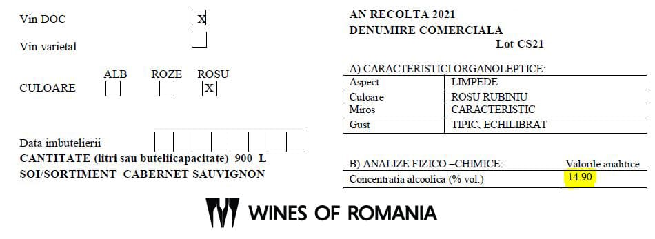 - the maximum limit of the total alcoholic strength can exceed 15% vol., in the case of wines with PDO which were obtained without enrichment [3], such as those that can be classified with the traditional mention C.T. – late harvested. It should be noted that this provision does not apply to wines with a Protected Geographical Indication, but only to those with a Protected Designation of Origin.