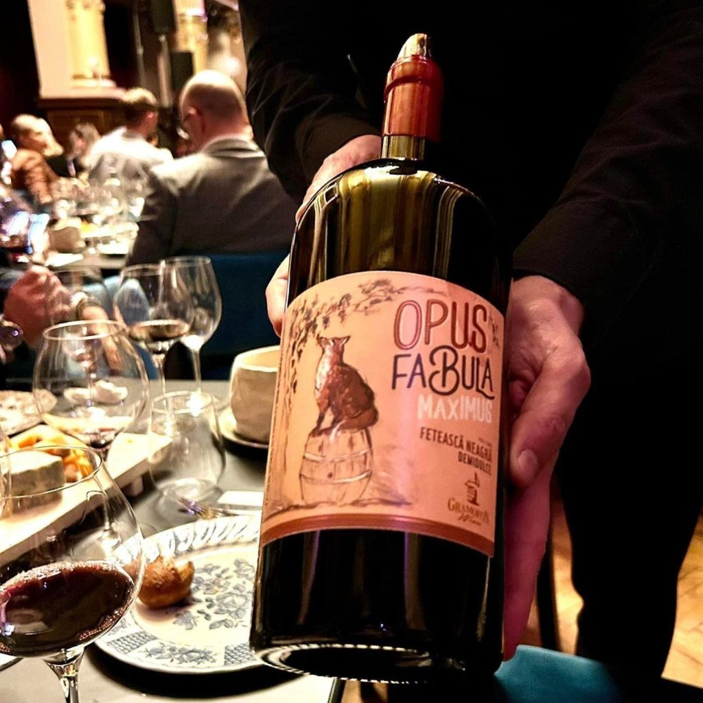 It was also here that the first glass dedicated to the national variety, Feteasca neagra, was launched, made by Chef & Sommelier at the request of Gramofon Wine. It was tested at the official opening, together with the preview of the Vino Veritas play, when only wines made of Feteasca neagra were tasted – Gramofon (off-dry), Sonorum and Opus Fabula Maximus, that is, the same Opus Fabula we know, only aged in oak barrels.