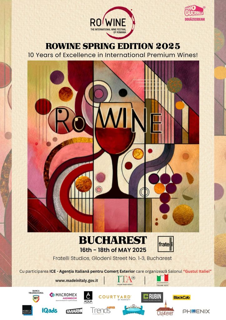 RO-Wine, cel mai mare festival de vinuri din România, celebrează 10 ani de vinuri premium și momente unice, între 16 și 18 mai, într-o ediție aniversară deosebită, la Fratelli Studios, București.